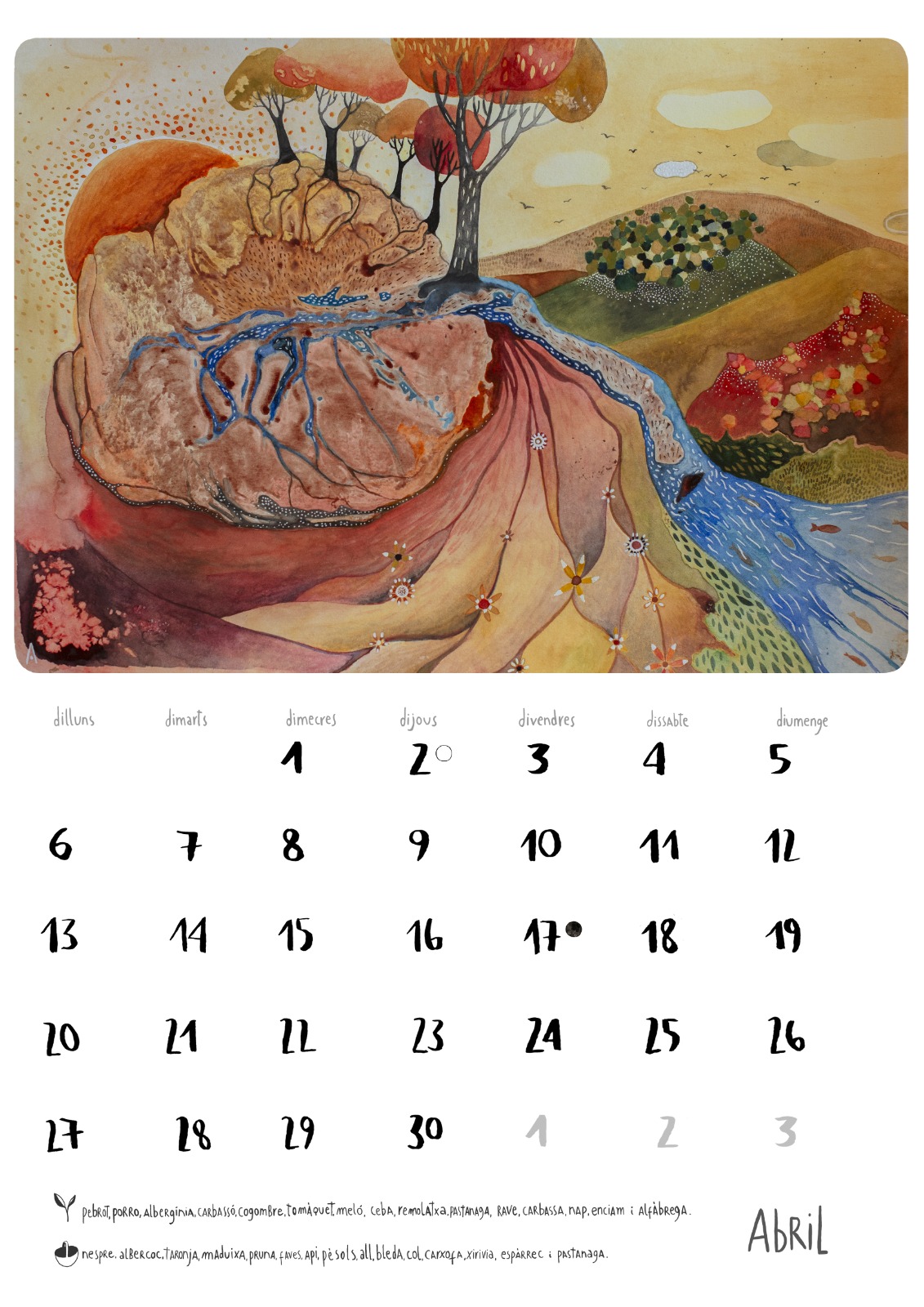 Aquest any he fet tema lliure. Hi podràs trobar, com sempre: – Les llunes – Els solsiticis i els equinoccis – Les verdures per sembrar a l’hort – Les verdures i les fruites del temps Mida A3 amb espiralt a dalt. Actualment en pots trobar als següents llocs: MANRESA Bar el Garitu Botiga Atelier La […]